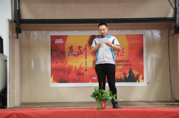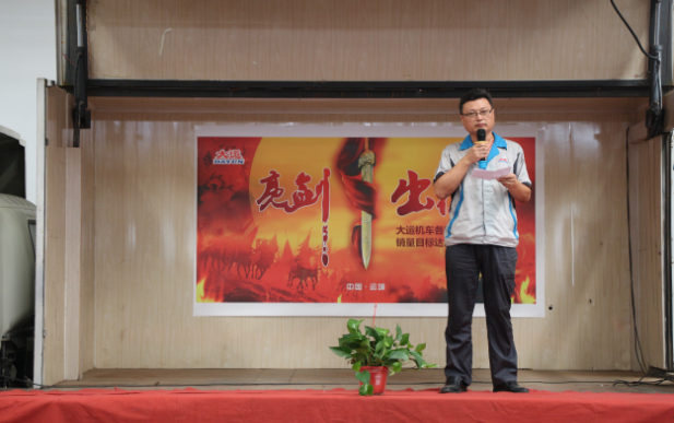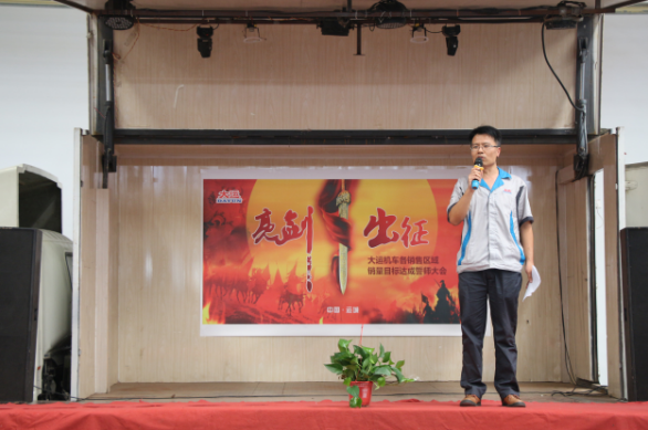 下午14:30,誓師大會在主持人的宣布中正式拉開帷幕。大運機(jī)車銷售副總助理盧傳祥首先上臺,對本次營銷精英誓師大會的開幕作了致辭,他希望我們大運機(jī)車的銷售精英們,能夠在9月份披荊斬棘,乘風(fēng)破浪,達(dá)成目標(biāo)。