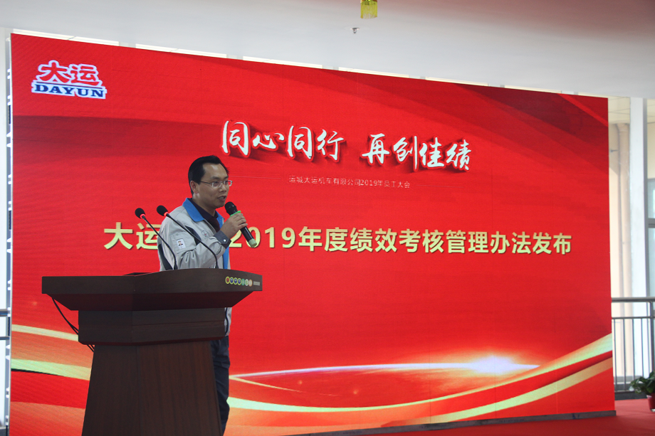大會首先聽取了大運機車總經(jīng)理助理姚占衛(wèi)頒布的《大運機車2019年經(jīng)營大綱》,明確了公司各部門2019年經(jīng)營指標(biāo)。他指出,新的一年,公司全體員工要以更加堅定的信心,更加鏗鏘的步伐,更加務(wù)實的作風(fēng),奮發(fā)拼搏、開拓進(jìn)取,努力開創(chuàng)企業(yè)高質(zhì)量發(fā)展的新局面。